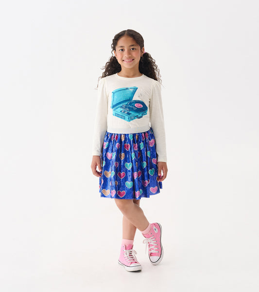Girls Festive Bows Puff Sleeve Graphic Tee