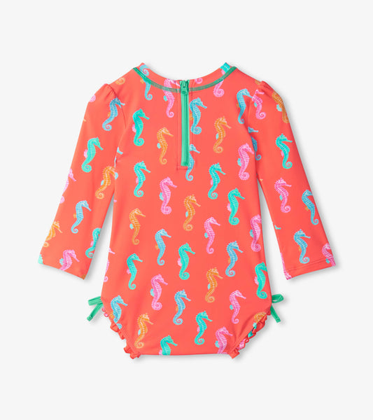 Girls Painted Sea Horses Ruffle Trim Swimsuit