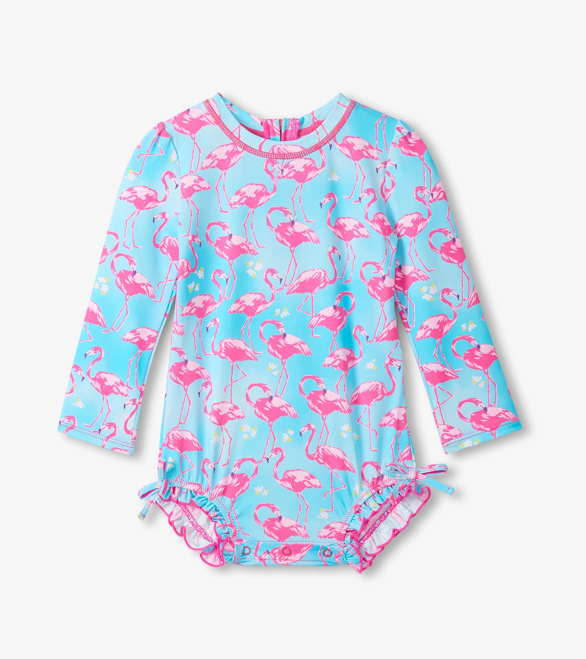 Baby Girls Flamingos One-Piece Rashguard Swimsuit