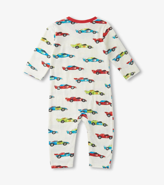 Baby Boys Water Color Racecars Long Sleeve Romper