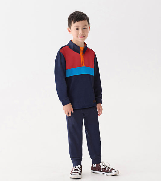Boys Navy Color Block Fleece 1/4 Zip Mockneck