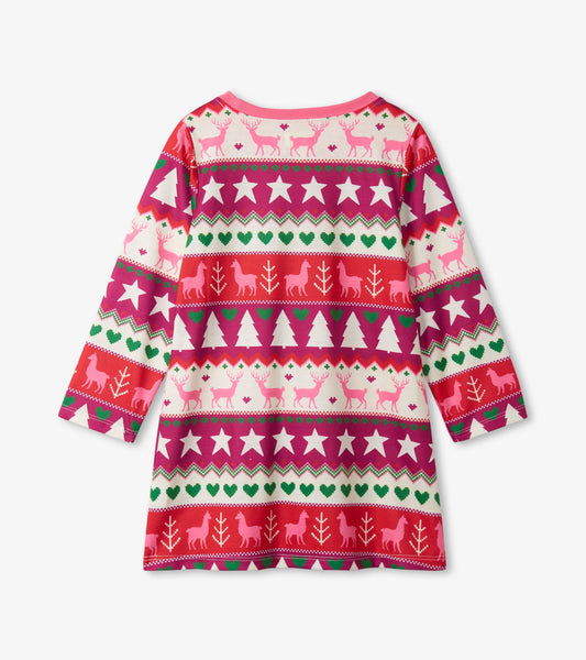 Holiday Fair Isle Long Sleeve Girls Nightgown