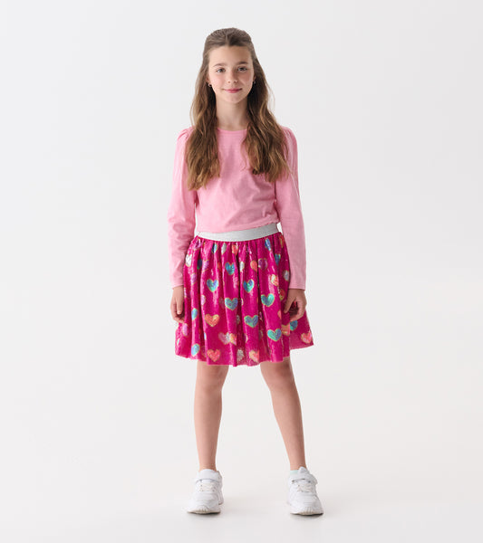 Girls Pink Busted Hearts Sequin Bomber Jacket