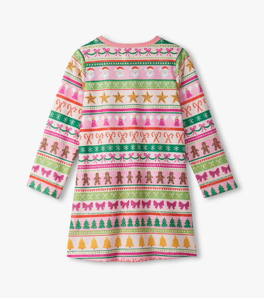 Girls Pink Fun Fair Isle Long Sleeve Nightdress