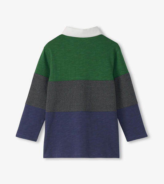 Boys Preppy Panelled Long Sleeve Polo Shirt