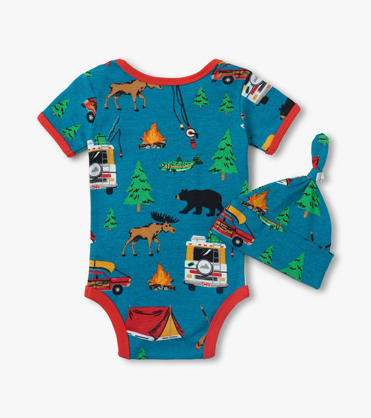 Baby Retro Camping Bodysuit With Hat