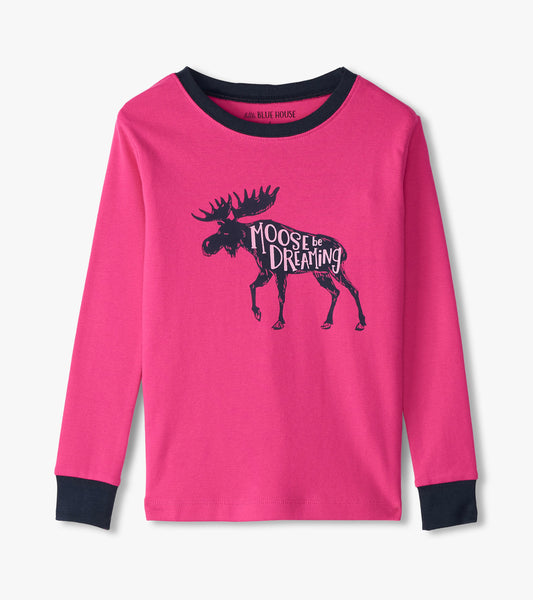 Moose Be Dreaming Raspberry Moose Kids Pajama Set