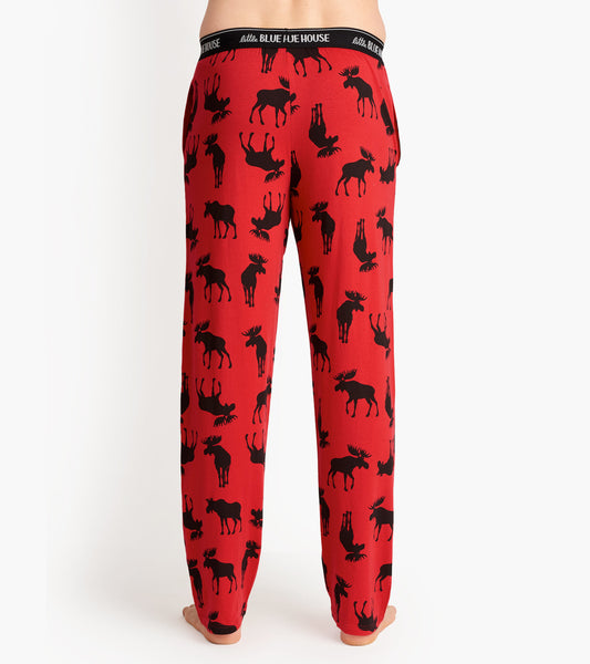 Moose On Red Men's Stretch Cotton Pajama Pants