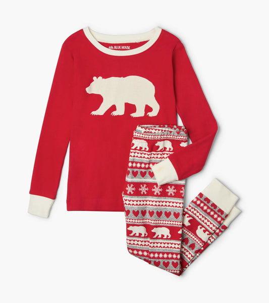 Fair Isle Bear Kids Appliqué Pajama Set