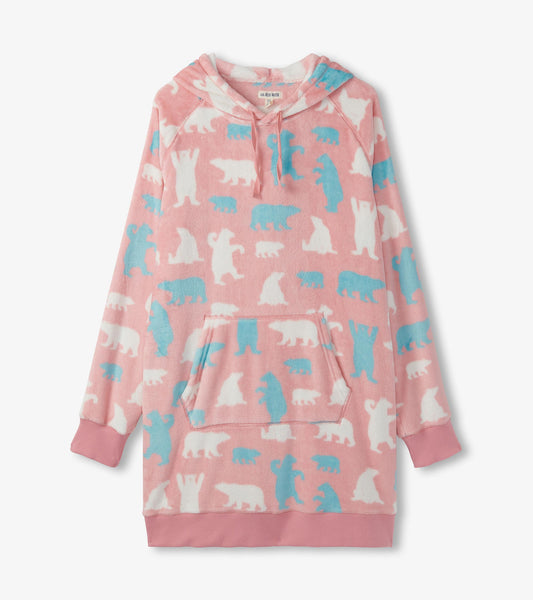 Women's Pink Polar Bears Oversized Fleece Hoodie