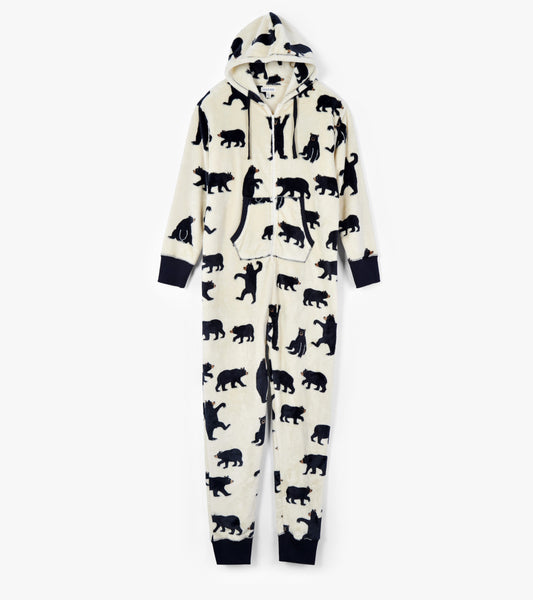 Adult Blue Polar Bears Hooded Fleece Jumpsuit