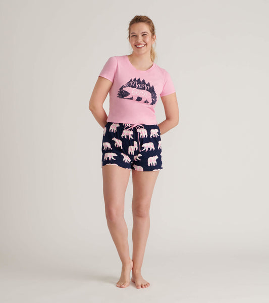 Black Bears on Natural Women's Cotton Sleep Shorts
