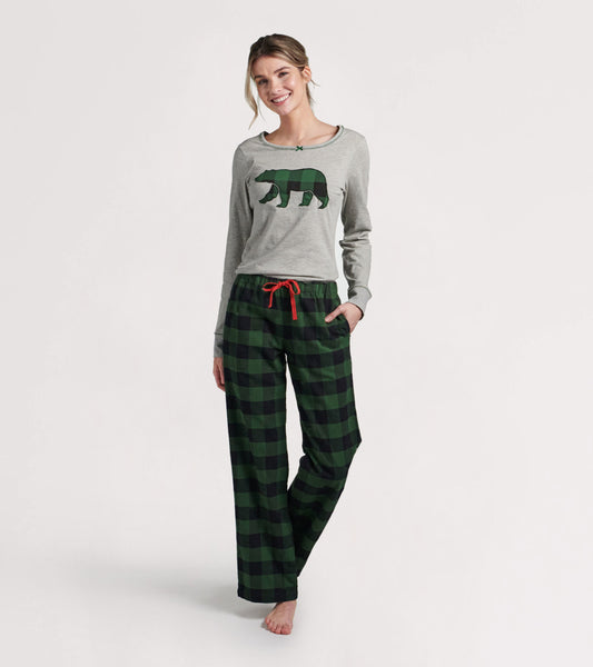 Forest Green Plaid Bear Women's Stretch Jersey Top