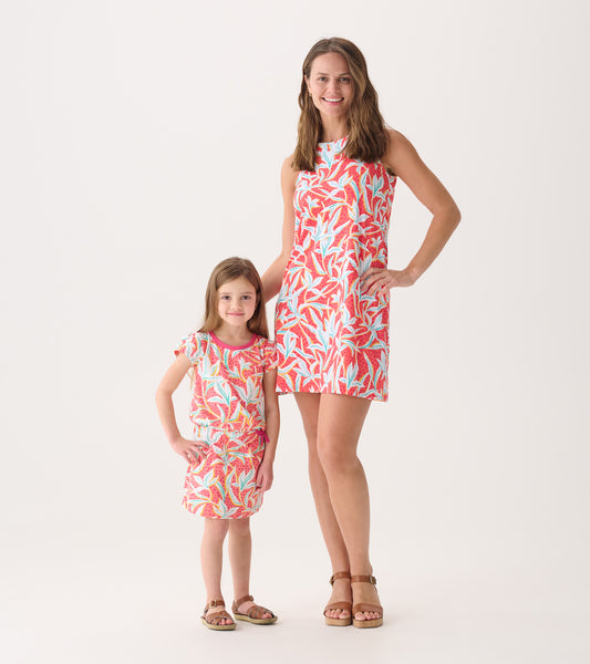 Women's Coral Fans Crew Neck T-Shirt Dress