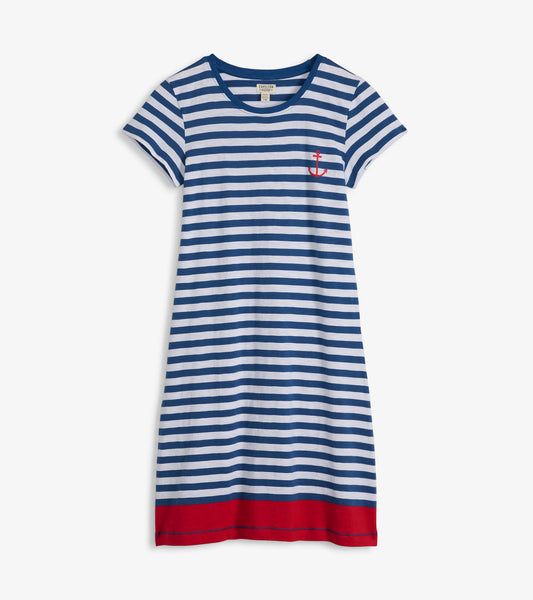 Women's Nautical Stripes Crew Neck T-Shirt Dress