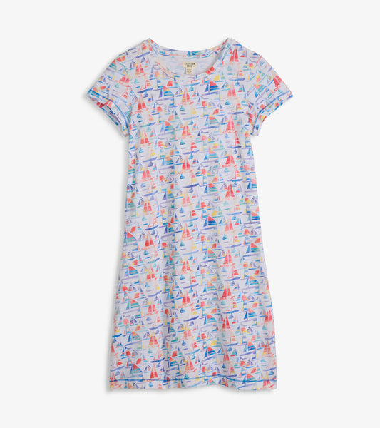 Women's Sailboat Print Crew Neck T-Shirt Dress