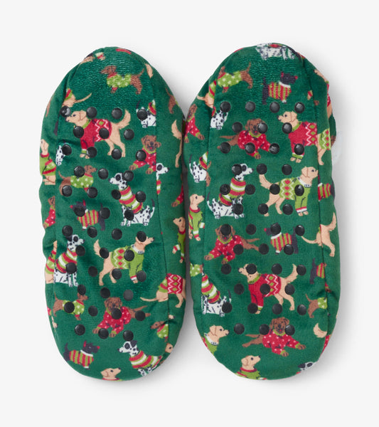 Women's Green Woofing Christmas Warm & Cozy Slippers