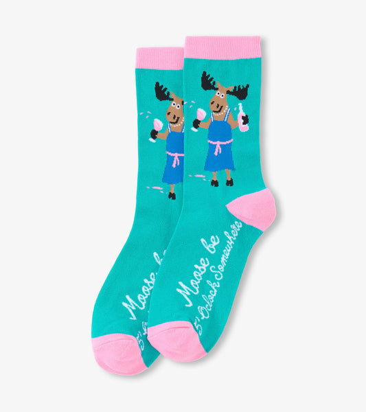 Moose On Red Women's Sherpa Lined Cabin Sock