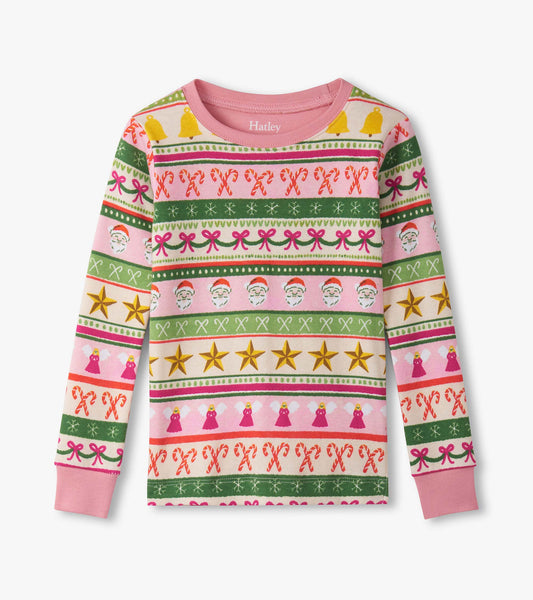 Girls Pink Fun Fair Isle Cotton Pajama Set