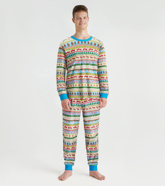 Men's Blue Fun Fair Isle Cotton Pajama Set