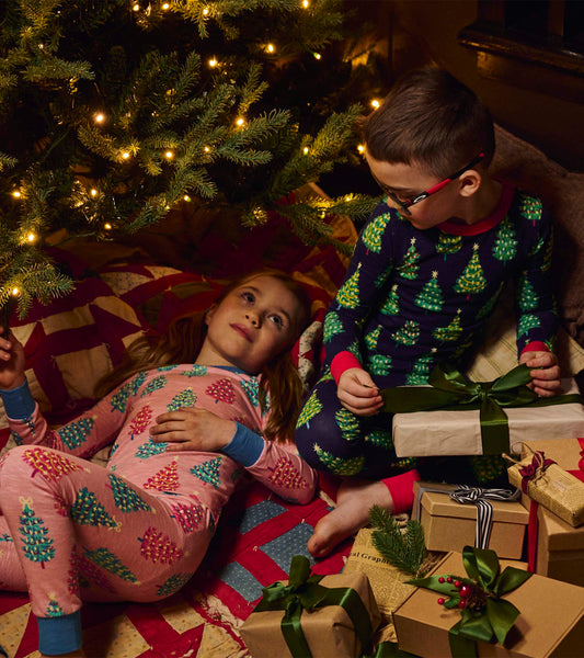 Girls Pink Bottle Brush Trees Cotton Pajama Set