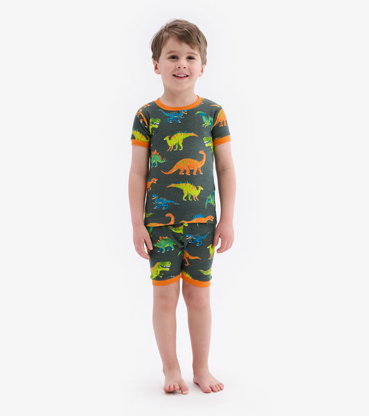 Colorblock Dino Short Pajama Set