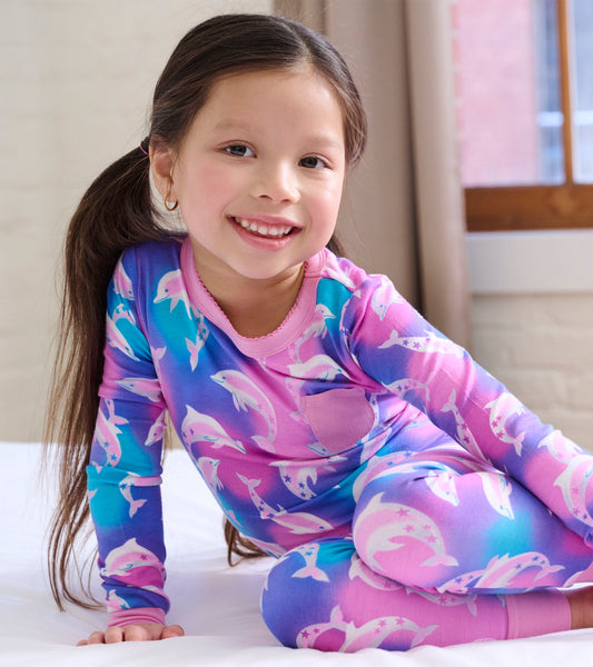 Girls Airbrush Dolphins Bamboo Pajama Set