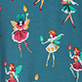 Drift into magical dreams with the Girls Bright Fairies Bamboo Pajama Set, crafted from a soft stretch bamboo blend for ultimate comfort and breathability. This cozy set features a teal blue base adorned with a whimsical all-over print of holiday fairies in red and green costumes, complete with striped stockings, playful wings, and glowing candles. The long-sleeve top includes a crew neckline with delicate doily-like trim and contrasting red ribbed details at the neck and cuffs, while the matching full-length bottoms have an elastic waistband and cuffed hems for a snug fit.