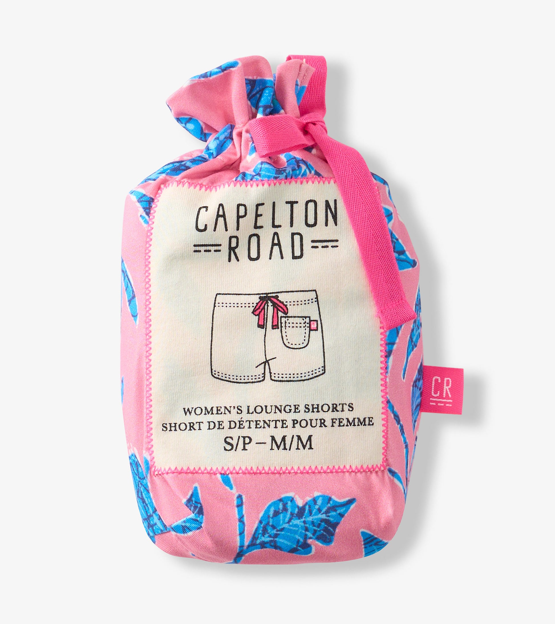 Bloom into comfort with these lounge shorts! Casual, breathable, and lightweight, they’re ideal for lounging at home or pairing with a coordinating sleep top for a complete set. The shorts feature a soft pink background with an all-over blue floral pattern. A comfortable elastic waistband and adjustable pink drawstring tie provide a relaxed fit. A small side pocket adds everyday practicality. Made from 100% Dreamspun polyester knit, the fabric feels smooth and lightweight against the skin—perfect for summer nights and lazy mornings. Each pair comes packaged in a matching drawstring pouch, making them gift-ready.